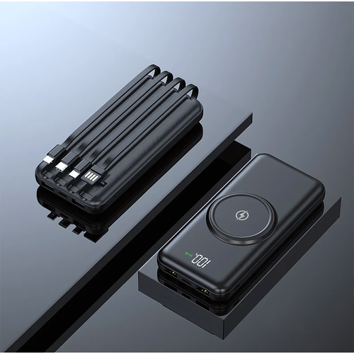 Портативный аккумулятор 20000 мАч, с беспроводной зарядкой, 4 кабеля, 3 дополнительных Usb-порта