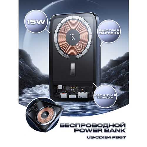 Power bank, 10000 mAh, беспроводной, магнитный USAMS