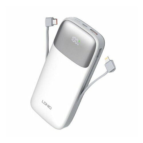 Внешний аккумулятор LDNIO PQ13 Power Bank 10000mAh 22.5W с двумя встроенными кабелями Type-C и Lightning