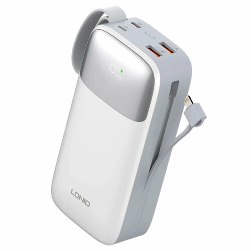 Внешний аккумулятор Power Bank 30000mah 22.5W LDNIO PQ30 c встроенными кабелями Type-C и Lightning