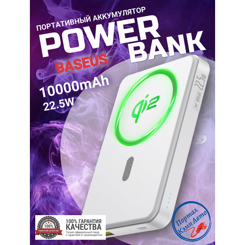 Power Bank внешний аккумулятор магнитный беспроводной Qi2 MagSafe повербанк 10000 мАч 22.5W Baseus