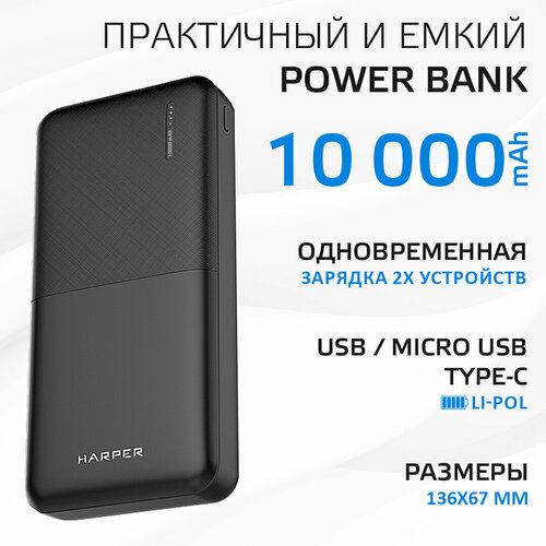 Портативный аккумулятор HARPER PB-10011, упаковка: коробка