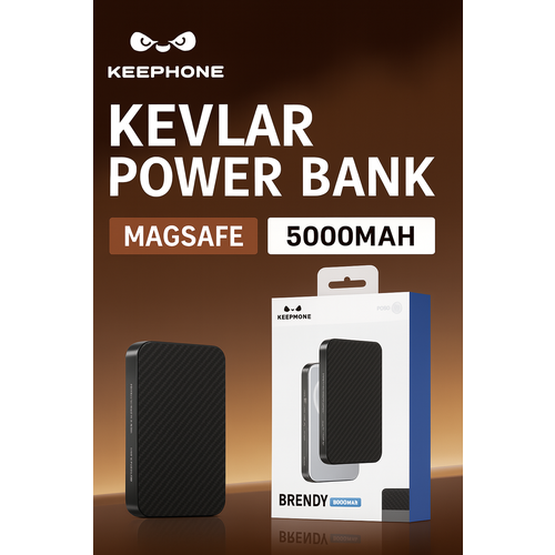 Внешний аккумулятор Keephone Kevlar Brendy MagSafe Power Bank 5000 mAh для iPhone, 20/15w- Черный