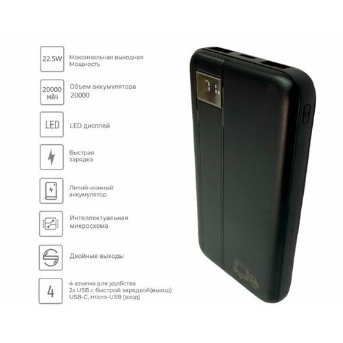 черный(POWER BANK) повербанк для ТЕХ, КТО хочет оставаться на связиподдерживает быстрый заряд QC 3.0 10000 mAh компактный размер, для смартфонов и планшетов, iphone, ipod. Процентная индикация заряда, в комплекте Micro usb кабель3 выхода 2 из них usb быстрая зарядка и один DP Type С порт быстрой зарядкигнездо USB: 5V-3