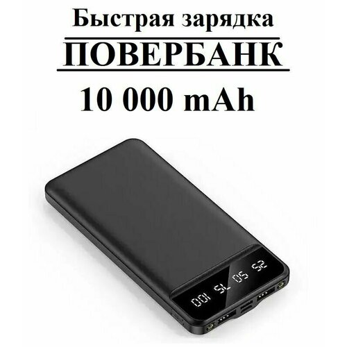 Повер банк с двумя разъемами USB, Type-C, micro USB / Power Bank 10000 mAh / Тонкий с быстрой зарядкой