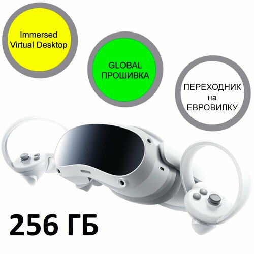Автономный GLOBAL VR шлем виртуальной реальности PICO 4 256 GB + переходник на евро вилку + Virtual Desktop + игры