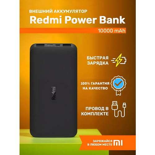 Внешний аккумулятор Xiaomi Redmi Power Bank 10000 мАч PB100LZM/black (vxn4305gl)