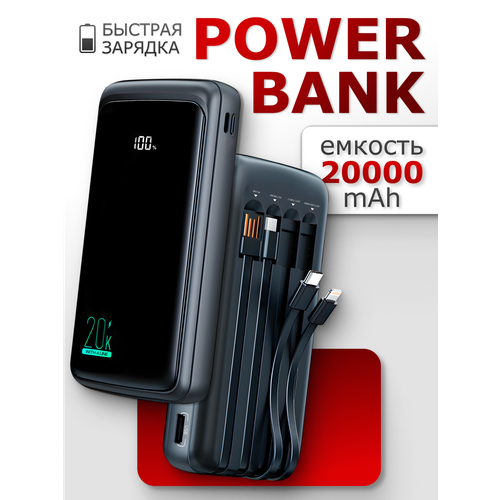 Повербанк для iPhone и Android / Power Bank 20000 Lightning, Type-c, Micro-Usb, USB-A / Пауэрбанк c проводами
