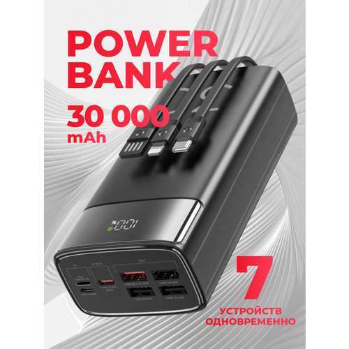 Повербанк 30000 mAh с быстрой зарядкой, 22.5 Вт, 3 встроенных кабеля, powerbank для айфона, пауэрбанк