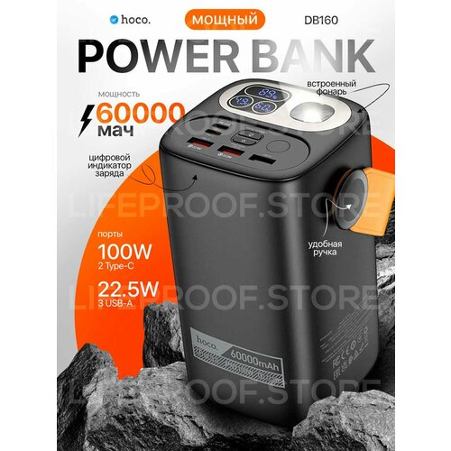 Повербанк / внешний аккумулятор Hoco DB160 60000mAh, 2хtype-C 100W, 3хUSB-A 22.5W, встроенный фонарь, цвет Черный