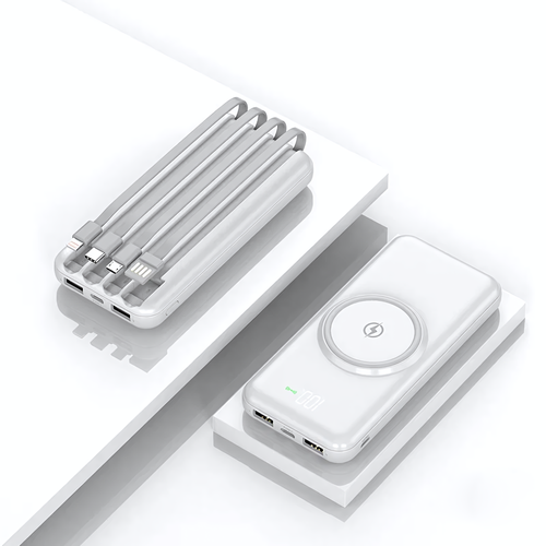 Портативный аккумулятор 20000 мАч, с беспроводной зарядкой, 4 кабеля, 3 дополнительных Usb-порта