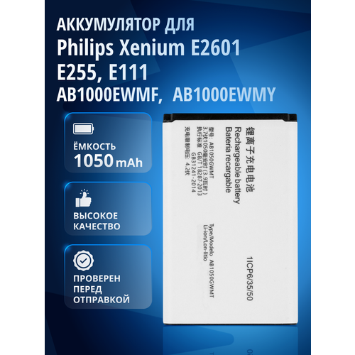 Аккумулятор AB1050GWMT для Philips Xenium E255, Philips E106, E103, X116
