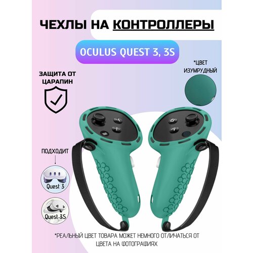 Защитные чехлы для контроллеров Oculus Quest 3, 3S/Силиконовые с ремешками изумрудный