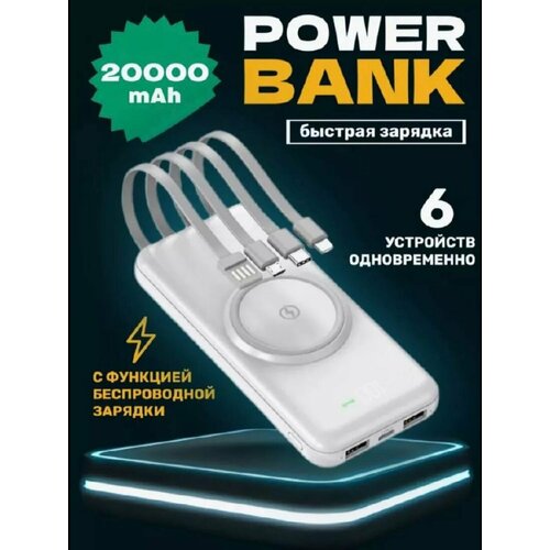 Повербанк внешний аккумулятор 20000 мАч с беспроводной зарядкой