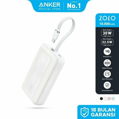 Высокоскоростное портативное зарядное устройство Anker Zolo 10000mAh, 30W (with cable Type-C) - White