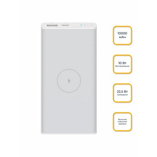 Беспроводной внешний аккумулятор, Xiaomi Wireless Power bank 10000 mAh, Быстрая зарядка, белый