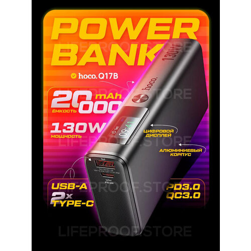 Внешний аккумулятор / повербанк Hoco Q17B 20000mAh, 130W, 2 Type-C PD + USB-A, цвет Серый графит