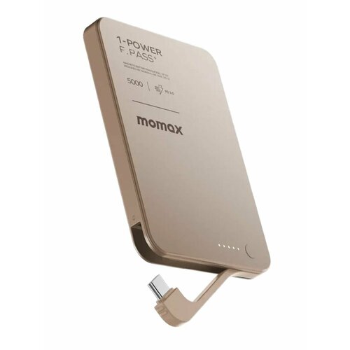 Портативное зарядное устройство Momax 1-Power F. Pass+ 5000mAh с встроенным кабелем Type-C - Sandstone