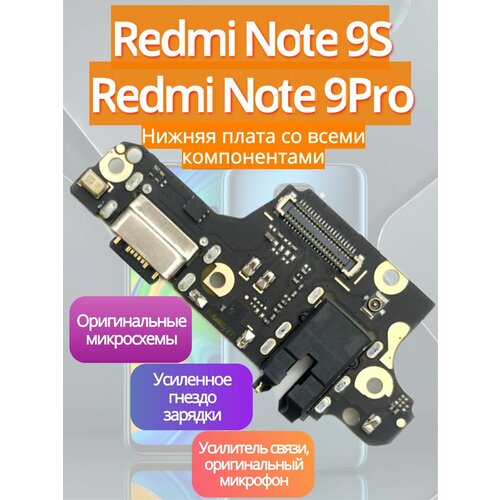 Премиум Нижняя плата (шлейф) / гнездо зарядки для Xiaomi Redmi Note 9S / Xiaomi Redmi Note 9 Pro на системный разъем/разъем гарнитуры/микрофон с функцией быстрой зарядки со всеми элементами