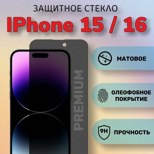 Защитное стекло для iPhone 15/16 / Айфон 15/16 Матовое, олеофобное закаленное противоударное полноэкранное Full Glue
