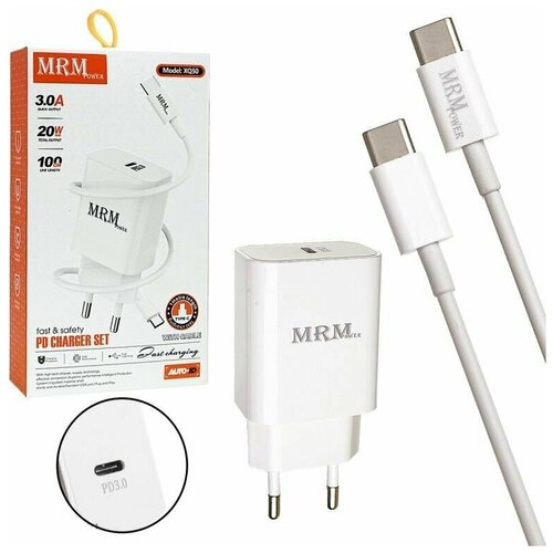Сетевое зарядное устройство MRM XQ50 PD 20W с кабелем Type-C to Type-C 1м