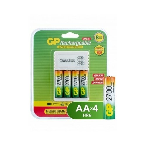 Зарядное устройство + аккумуляторы GP USB + 4 аккум. АA (HR6) 2700mAh (GP 270AAHC/CPB-2CR4)