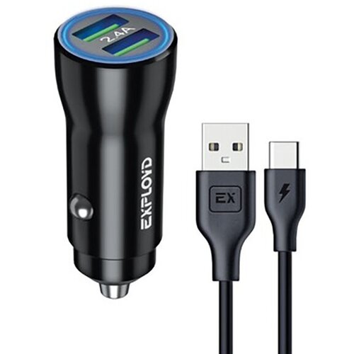 Автомобильное зарядное устройство EXPLOYD EX-Z-1447 Type-C, 2.4A, 2хUSB, черный