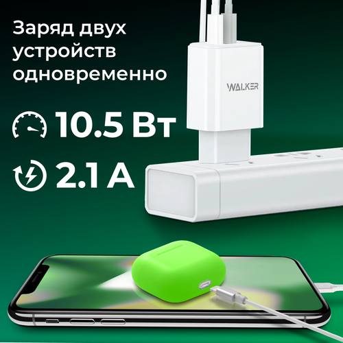 Зарядка для айфона, WALKER, WH-31, 10,5 Вт, 2,1 А, 2 USB, зарядное устройство для телефона, блок, адаптер питания на iphone, samsung, android, белый