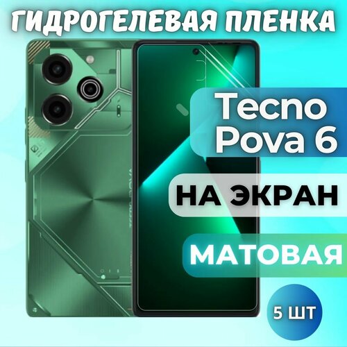 Комплект 5шт. Защитная гидрогелевая пленка на Tecno Pova 6 / матовая на экран / Противоударная бронепленка с эффектом восстановления на Техно Пова 6