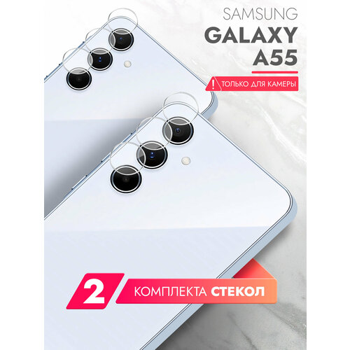 Защитное стекло для Samsung Galaxy A55 (Самсунг Галакси А55) на Камеру 2 шт, (гибридное: пленка+стекловолокно), прозрачное силиконовая клеевая основа тонкое Hybrid Glass, Brozo