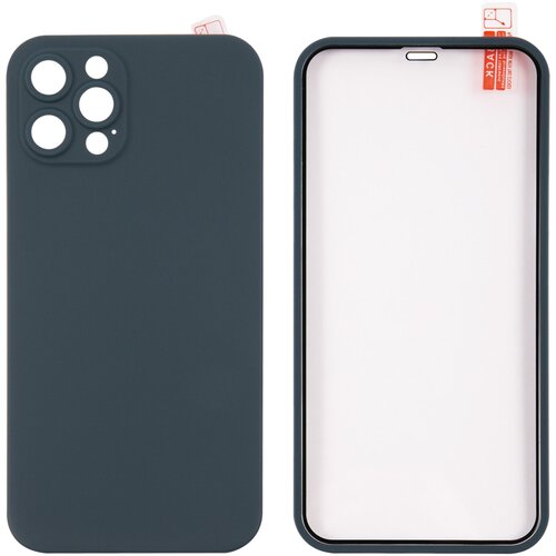 Защитный чехол для iPhone 12 Pro Max+стекло/Защита от царапин для телефона Айфон 12 Про Макс/Бампер на iPhone/Накладка/чехол пластик, темно-синий