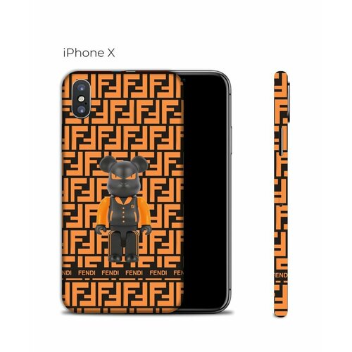 Защитная пленка на Айфон Икс с защитой краёв / Виниловая наклейка на заднюю панель iPhone X с принтом FENDY