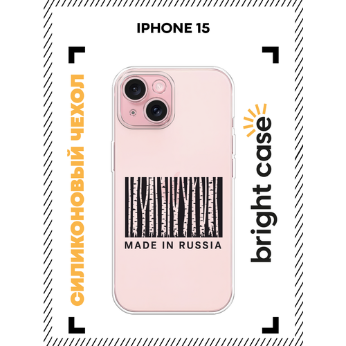 Чехол на Apple iPhone 15 / Айфон 15 с принтом Черные березы Made in Russia, прозрачный