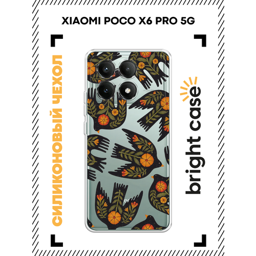 Чехол на Xiaomi Poco X6 PRO 5G / Поко X6 Про 5G с принтом Русские ласточки, прозрачный
