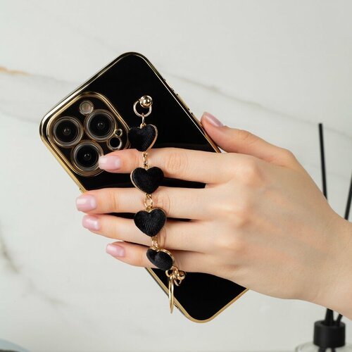 Силиконовый чехол для iPhone 14 Pro Max с цепочкой из сердечек