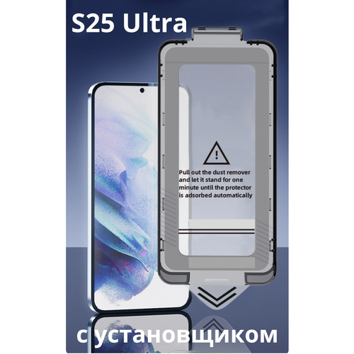 Защитное стекло для Samsung Galaxy S25 Ultra, с автоустановщиком, олеофобное, с черной рамкой, без выреза под камеру