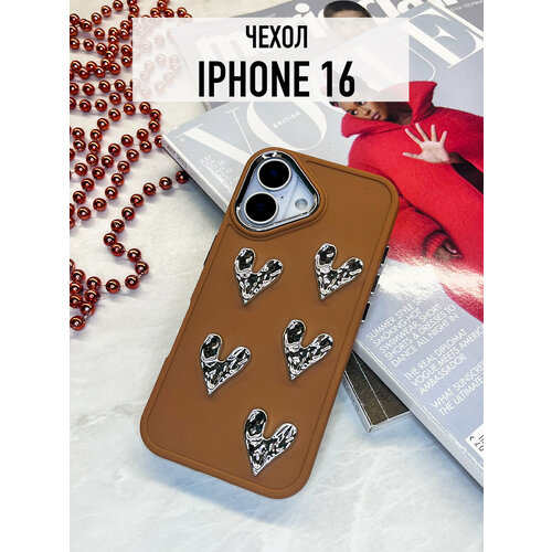 Матовый силиконовый чехол на iPhone 16 с серебристыми сердечками