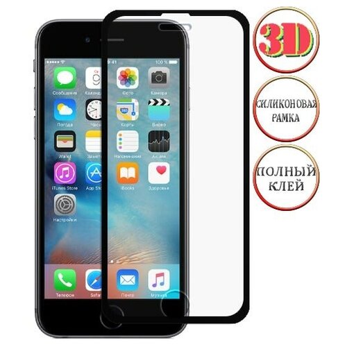 Защитное 3D стекло для Apple iPhone 6 / 6S изогнутое клеится на весь экран 4.7" с черной силиконовой рамкой