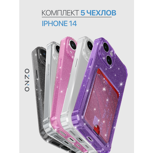 Комплект чехлов ONZO для Apple iPhone 14 прозрачный, серебряные блестки, фиолетовый, розовый