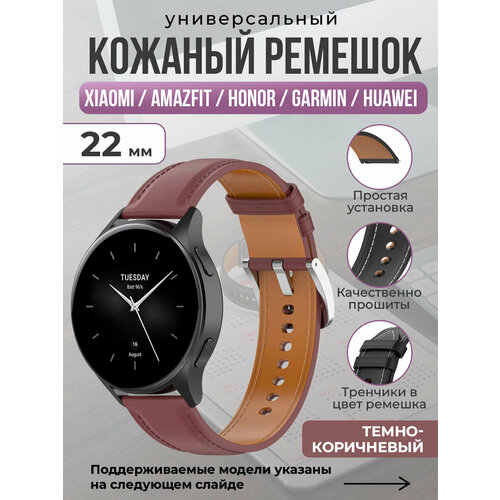 Универсальный кожаный ремешок для Xiaomi, Amazfit, Honor, Garmin, Huawei, 22 мм, темно-коричневый