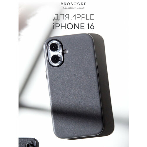 Люксовый кожаный чехол Broscorp на Apple iPhone 16 (Айфон 16), натуральная кожа, графит