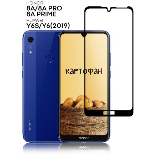 Защитное стекло для Honor 8A, 8A Pro, 8A Prime, Huawei Y6S, Huawei Y6 (2019), Y6 Prime 2019 (Хонор) прозрачное стекло с рамкой, легко наклеить