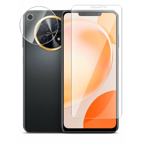 Защитное стекло для Huawei Nova Y91 (Хуавей Нова У91) на Экран и Камеру, (гибридное: пленка+стекловолокно), прозрачное тонкое Hybrid Glass, Brozo