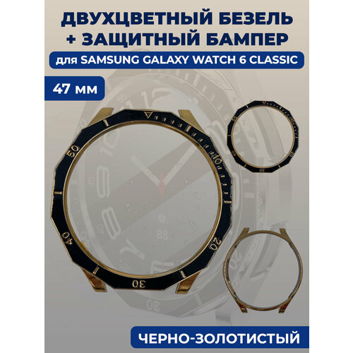 Двухцветный безель + защитный бампер для смарт-часов Samsung Galaxy Watch 6 Classic, 47 мм, черно-золотистый