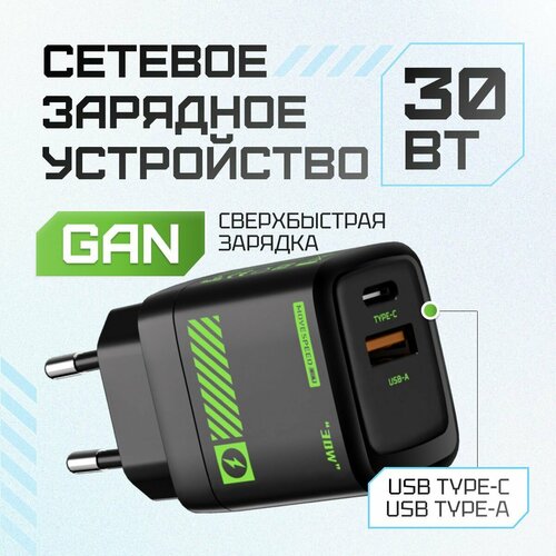 Сетевое зарядное устройство Movespeed 1xType-C+1xUSB- A 30W PD2.0 QC3.0 (AC30) EU Black