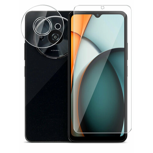 Защитное стекло для Xiaomi Redmi A3 (Ксиоми Редми А3) на Экран и Камеру, (гибридное: пленка+стекловолокно), прозрачное силиконовая клеевая основа тонкое Hybrid Glass, Brozo