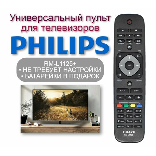 Пульт универсальный RM-L1125+ для телевизора Philips / Филипс, корпус как у 9965 900 00449 (YKF308-001) + Батарейки в подарок
