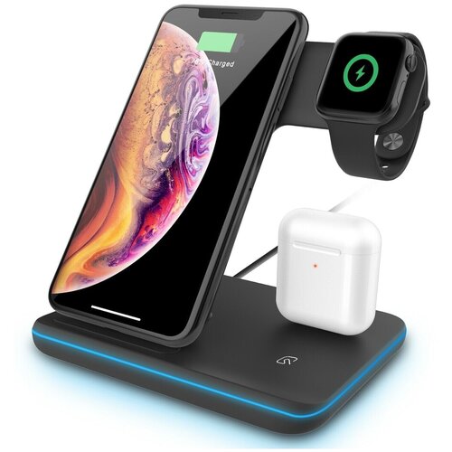 Зарядная станция беспроводная 3 в 1: iPhone, Apple Watch, Airpods, 15Вт (черная)