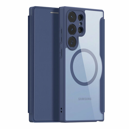 Прозрачный чехол книжка синего цвета с поддержкой MagSafe от Dux Ducis для Samsung Galaxy S23 Ultra, серия Skin X Pro Series Case