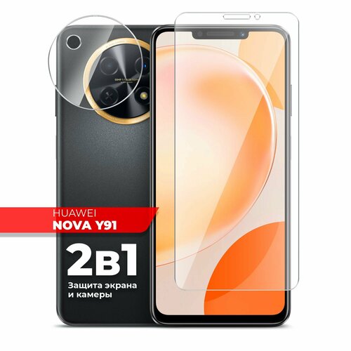 Защитное стекло для Huawei Nova Y91 (Хуавей Нова У91) на Экран и Камеру, (гибридное: пленка+стекловолокно), прозрачное силиконовая клеевая основа тонкое Hybrid Glass, Miuko